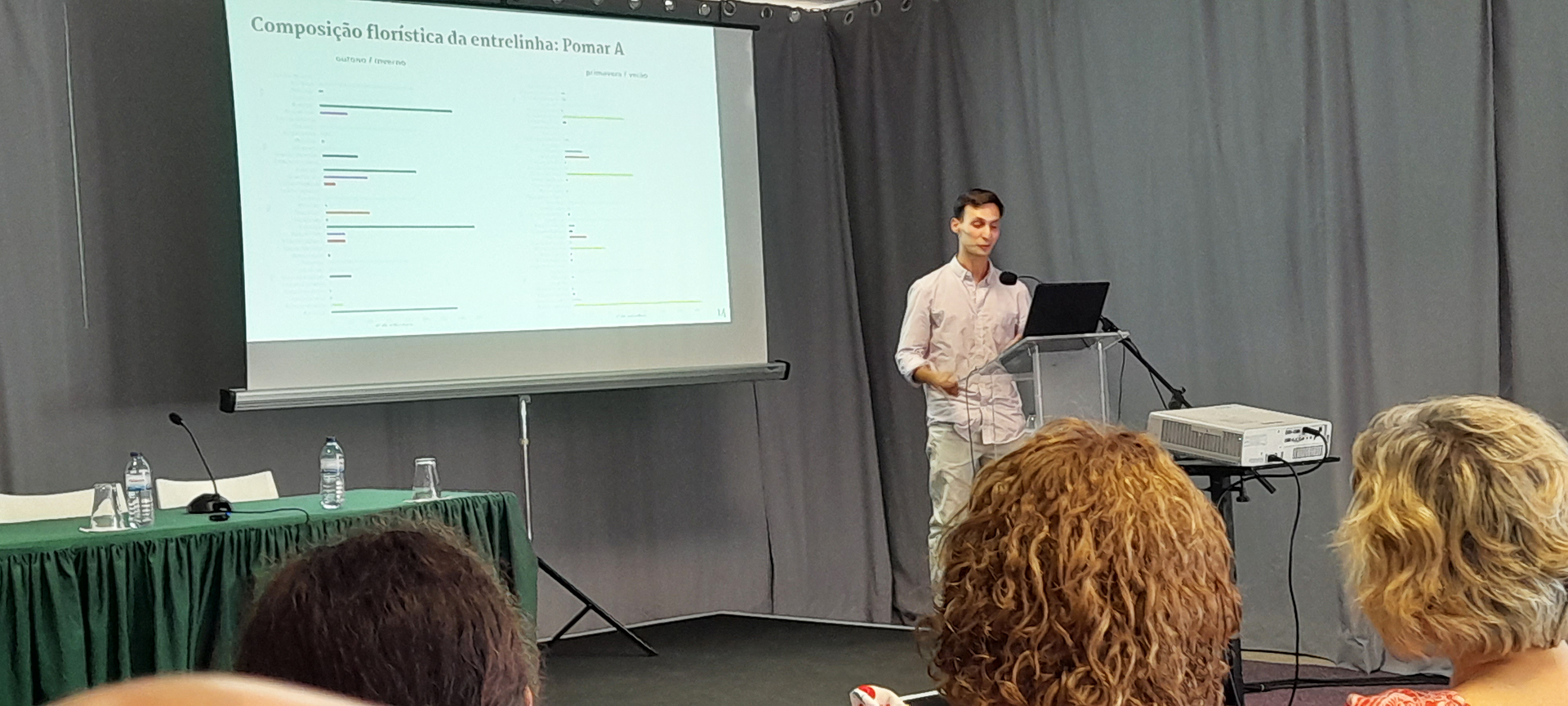 Apresentação de resultados preliminares do projeto, durante o Balanço de Campanha das Pomóideas, realizado em Óbidos, em dezembro de 2024, a cargo do professor do ISA, David Fangueiro.