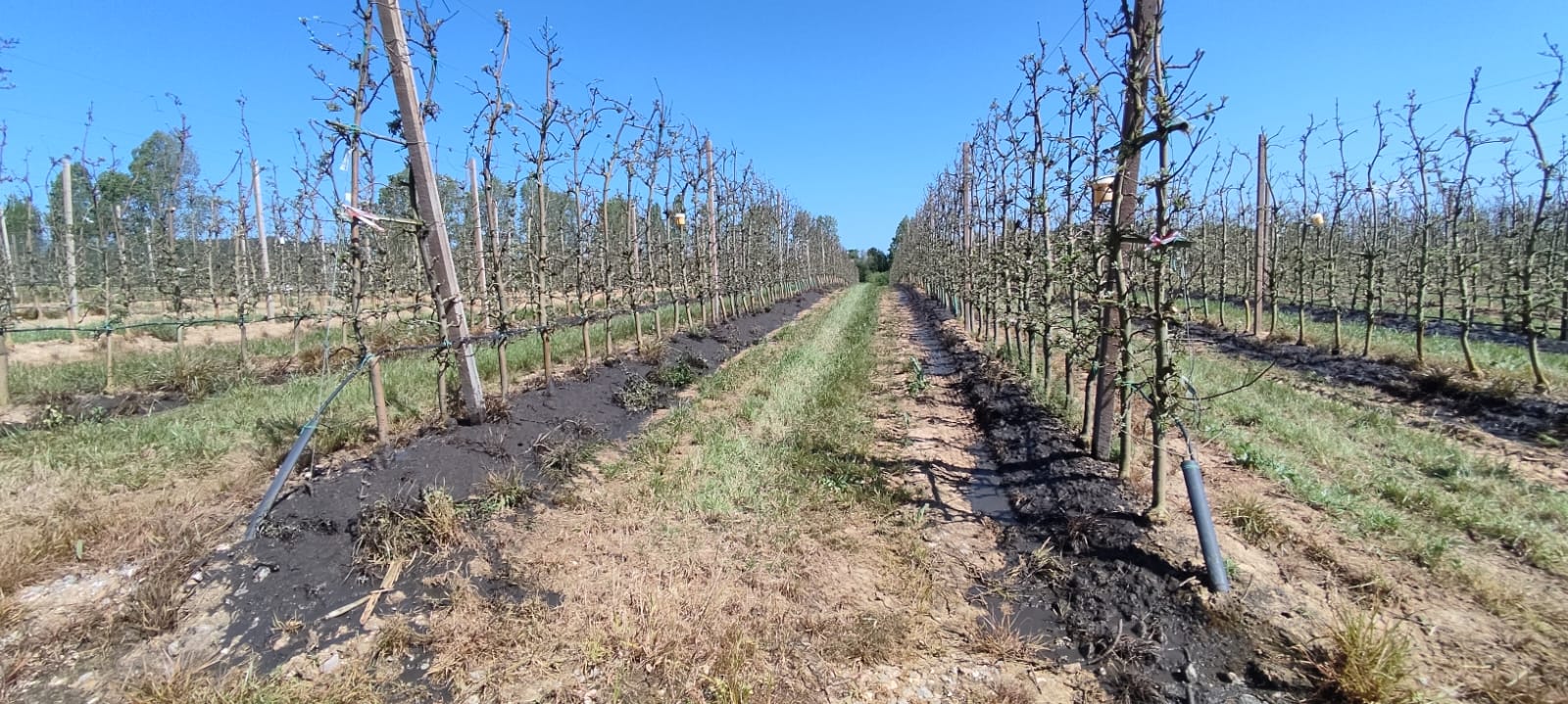 Aplicação de chorumes na linha realizado a 4 de abril de 2024 nos pomares da Granfer e Frutoeste.